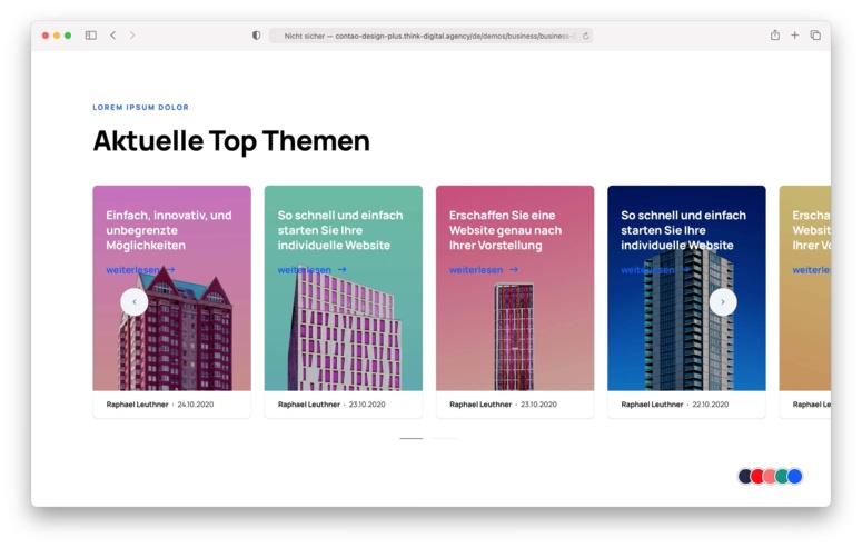 Mit Contao als intuitiver Basis ermöglicht das Theme verschiedenste Anforderungen mit Leichtigkeit und ohne Programmierkenntnisse umzusetzen. Aus einem Set von über 100 aufeinander abgestimmten Elementen können innovative Onepager oder umfangreiche Business Websites im Handumdrehen erstellt werden. Hunderte Kunden haben Beni Ocker bereits erfolgreich im Einsatz. Nutzen auch Sie jetzt die Vorteile von Beni Ocker.