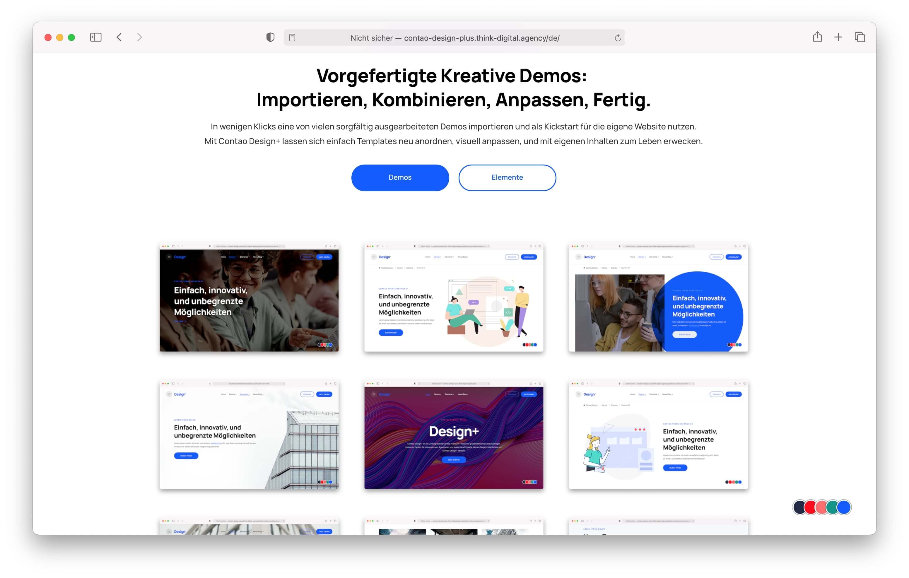 In wenigen Klicks eine von vielen sorgfältig ausgearbeiteten Demos importieren und als Kickstart für die eigene Website nutzen. Mit Beni Ocker lassen sich Templates einfach neu anordnen, visuell anpassen, und mit eigenen Inhalten zum Leben erwecken.