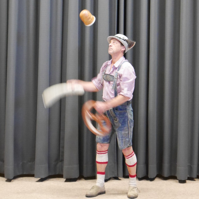Wenn Franz Joseph Anton alias „Falanze“ auf eine Leiter steigt und Brezel, Weißwurst und Senfglas jongliert, oder wenn Maria Lina alias Mai Lin weißblaue Tücher auf den Füßen dreht, dann kommen die Zuschauer auf ihre Kosten.