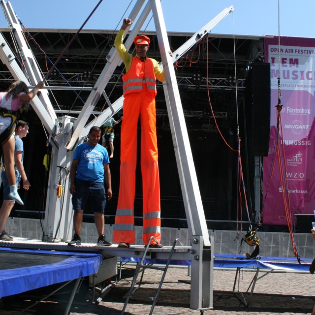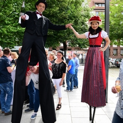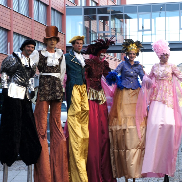 Alle hier beschriebenen Figuren sind auch als XXL–Stelzen-Version buchbar, auch im Duo und Wechsel mit ihren „Miniaturausgaben“.